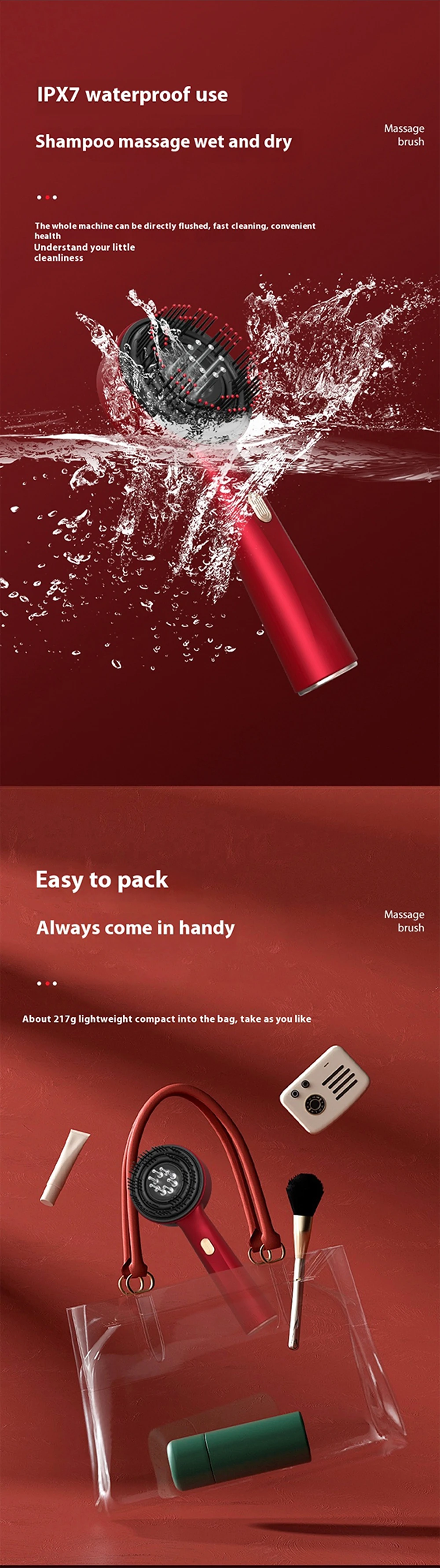 5.IPX6 waterproof, can massage the scalp when washing hair.